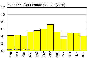 | Среднее месячное количество часов солнечного сияния в день. |