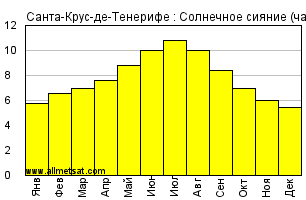 | Среднее месячное количество часов солнечного сияния в день. |
