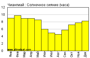 Среднее месячное количество часов солнечного сияния в день.