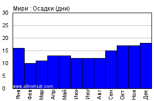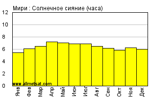 Среднее месячное количество часов солнечного сияния в день.