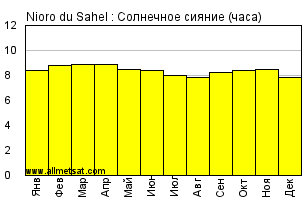 | Среднее месячное количество часов солнечного сияния в день. |