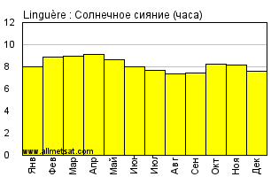 | Среднее месячное количество часов солнечного сияния в день. |