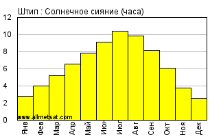 | Среднее месячное количество часов солнечного сияния в день. |