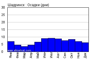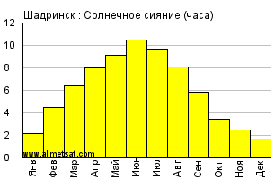 Климат : Шадринск, Россия широта: 56-04N, долгота: 63-39E, высота над уровнем моря: 89 м