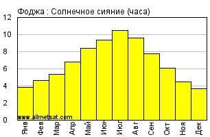 | Среднее месячное количество часов солнечного сияния в день. |