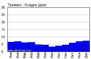 | Количество дней с осадками не менее 1 |