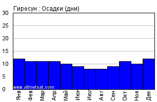Климат : Гиресун, Турция широта: 40-55N, долгота: 38-24E, высота над уровнем моря: 38 м